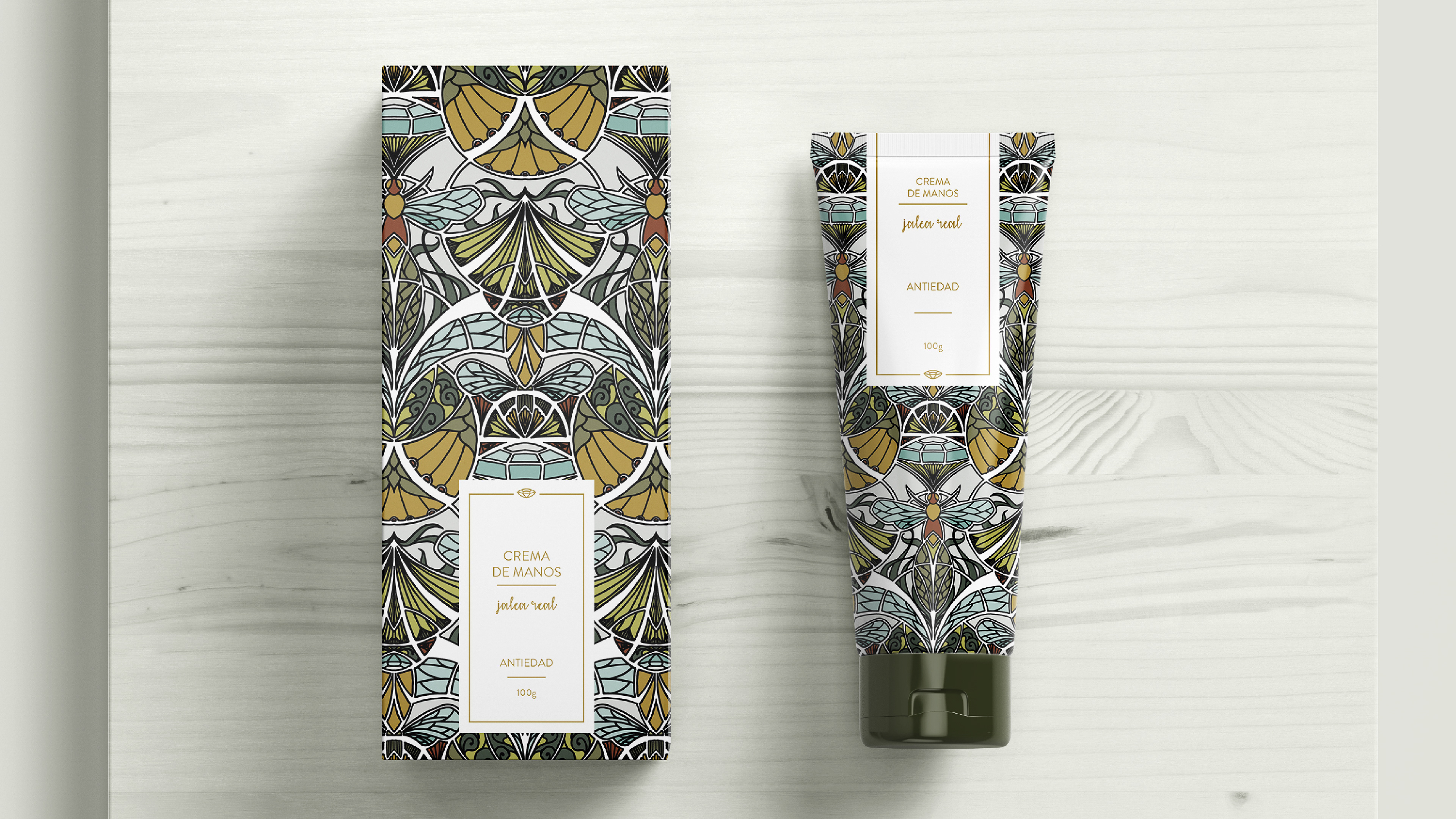 Porque estampados también son bien venidos en los paquetes. Fué pensando en la belleza y la riqueza de las colmenas que nació esa colección de paquetes para una línea de cosméticos ficticia.
